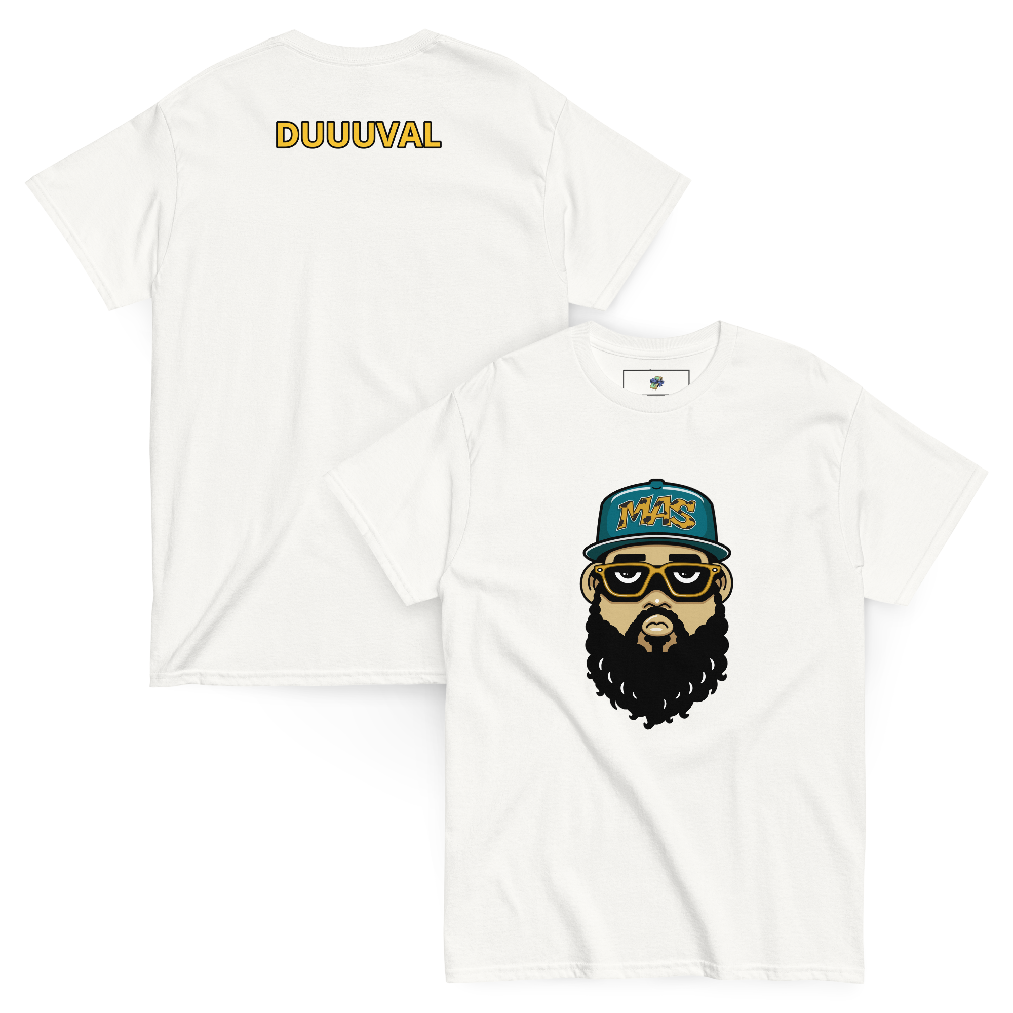 This is a limited run of *Big & Tall* Tee's sporting the new Mas Logo with the Jaguar Color Way! Rep the Teal and Gold with our cities slogan "Duuuval" on the back! There is only 2 of each size, printed on a higher quality shirt! Don't wait, once they sell out they are gone!